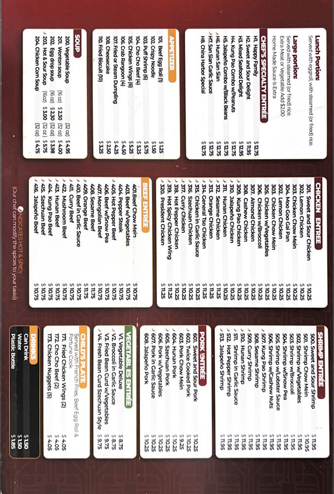 China Harbor Menu (Update 2025)